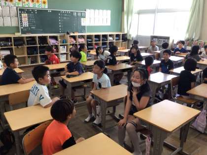 英語ではお互い会話して授業をしていました。楽しそうでした。