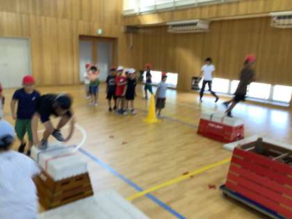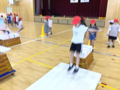 とび箱を使って、遊びました。 次からは跳ぶことも始めていきたいですね。