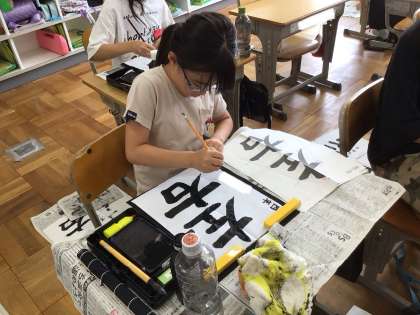 「左」と「右」の一、二画目の長さを意識して練習しました。