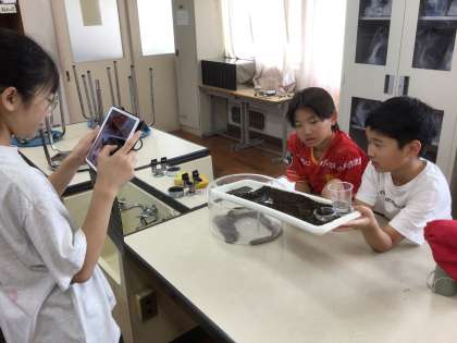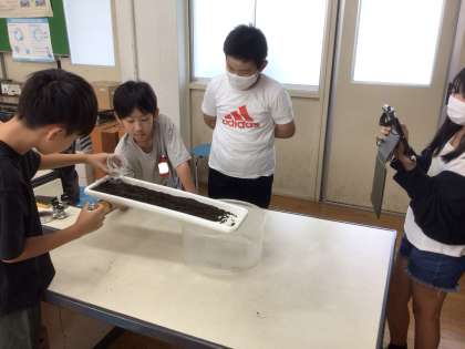 流れる水の様子を観察しました。水が土を運んだり削ったりすることに気づきました。