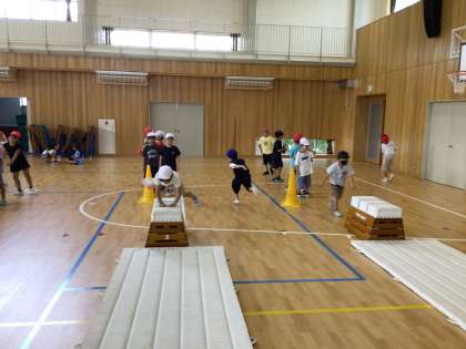 2年体育 とびばこ 公開日 2025/09/13 更新日 2025/09/13 各学年から 両足で乗る、手で支持して乗るを繰り返してから、実際に跳ぶ練習を進めました。 3段から6段のコースに分かれて、どんどん跳んでいきます。