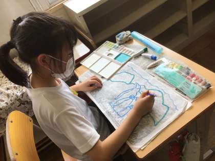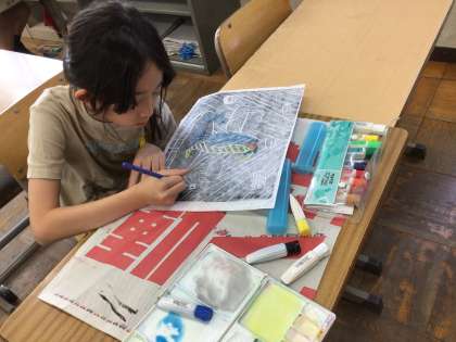 版画制作も完成に近づいてきました。裏から丁寧に色を付けていきます。