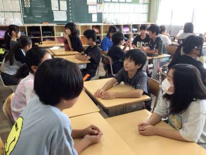 6年 スキルアップトレーニング 公開日 2025/09/18 更新日 2025/09/18 各学年から 国語科「話し合って考えを深めよう」で学んだ話し合いの仕方を生かして、「修学旅行のバスで、みんなが楽しめるDVDは何か」について話し合いました。