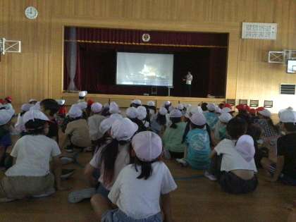 1年おいでん出前講座 公開日 2025/09/18 更新日 2025/09/18 各学年から 1・2年生合同で「おいでん出前講座」がありました。まず、おいでんまつりの歴史について、クイズに答えながら知ることができました。