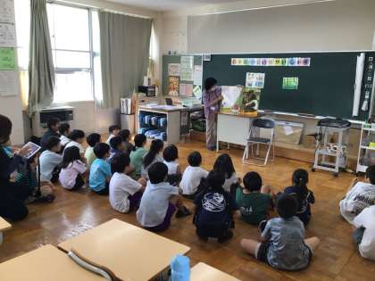 夏休みが明けて、はじめての読み聞かせでした。ボランティアの方々、いつもありがとうございます。