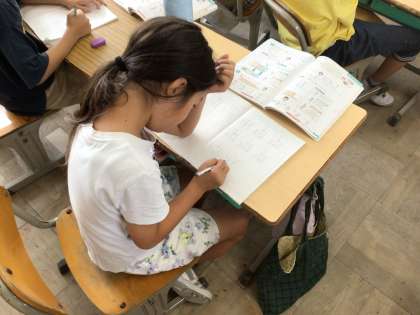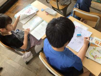 一の位と十の位のどちらもくり上がる問題を解きました。