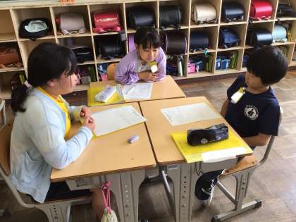 自分のテーマをグループで紹介し合い、これから実践するエコアクションを考えました。