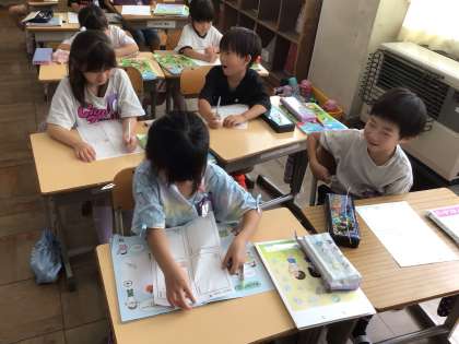 クラスの友達について聞いたり自分のことについて話したりして、友達紹介カードを作りました。