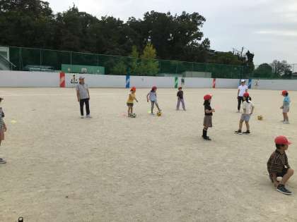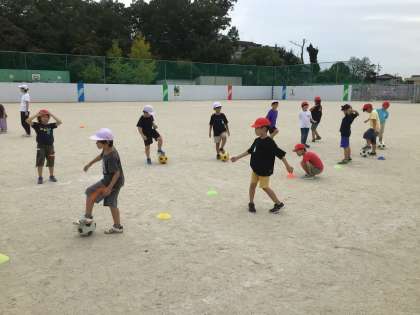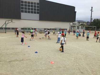 2年体育 ボールけり遊び 公開日 2025/09/26 更新日 2025/09/26 各学年から 来週、グランパスボールクリニックで、サッカーの体験をします。そこで、体育の時間にも、ボールを足でけったり、止めたりする練習をしました。