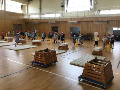 とび箱が進みました。跳び箱を横にして飛び越える練習もしました。