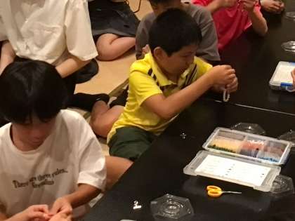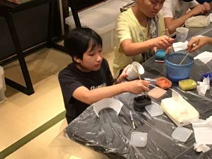 夕食後の伝統工芸体験では、