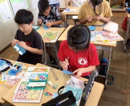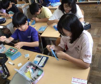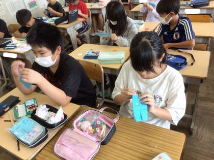 今まで勉強した縫い方を使って、ティッシュケースを作っていました。
