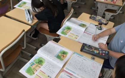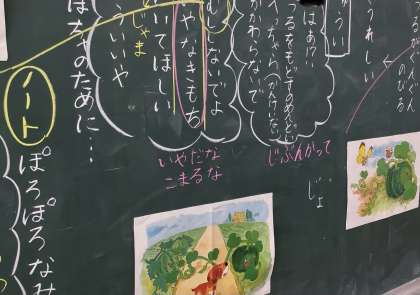 「かぼちゃのつる」を題材に、気持ちのよい生活について考えました。意欲的にノートに考えをまとめたり、発言したりしています。