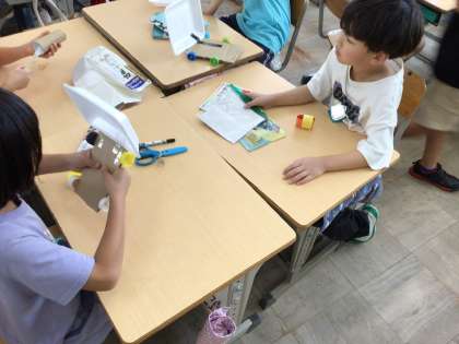 おもちゃ作りも手慣れてきました。 図書を借りて、新しいおもちゃ作りを始める子もいます。
