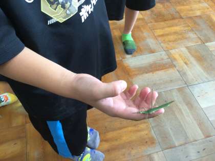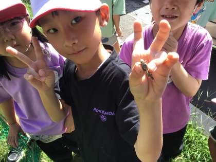 「むしとなかよし」の学習で、校庭にいる虫探しをしました。現在育てているさつま芋畑にてんとう虫がいたり、アニマルランドにバッタがいたりと、いろいろな虫を見つけることができました。
