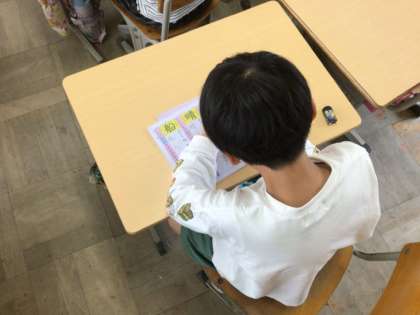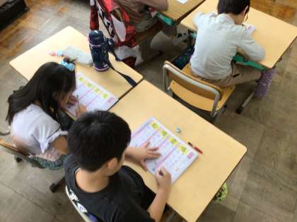 新しい漢字を学んでいます。 素晴らしい集中力です。