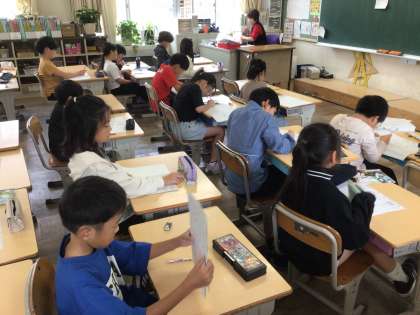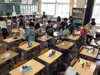 フェスタで展示する作品ができ、今日は鑑賞の時間をしているクラスがありました。