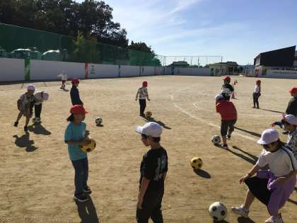 サッカーボールの扱いが上手になってきました。
