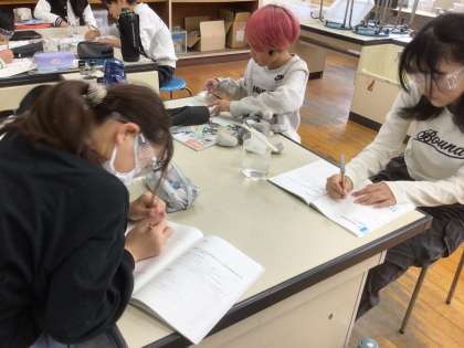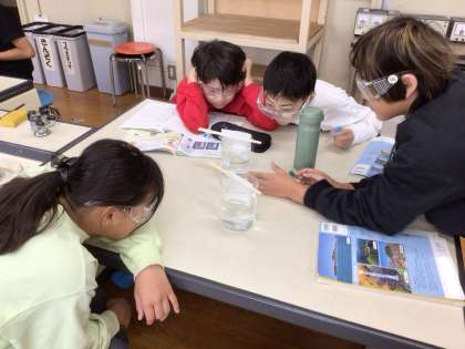 食塩が水に溶ける様子を観察しました。