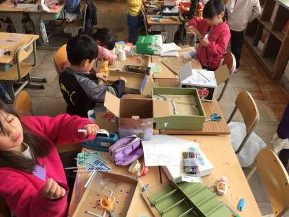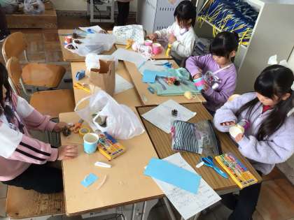 1年 生活科 公開日 2025/11/20 更新日 2025/11/20 各学年から 緑化センターで拾ってきた木の実などを用いて、秋のおもちゃ作りをしました。最初は黙々と作業していましたが、徐々にグループのメンバーや友達と協力しあう姿が見られました。