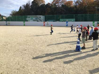 リングのバトンを使ってリレーの練習をしました。