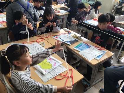 生活科「ふゆだいすき」の学習で、ものづくりサポーターさんに凧づくりを教えていただきました。