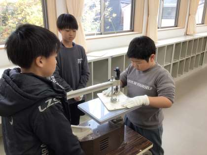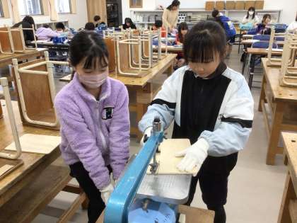 5年生 図工 公開日 2025/12/03 更新日 2025/12/03 各学年から 「切り分けた形から何作る?」 電動のこぎりを使って、自分たちがデザインしたパズルの形に切り分け始めました。 友達と協力しながら、安全に気をつけて使っていました。