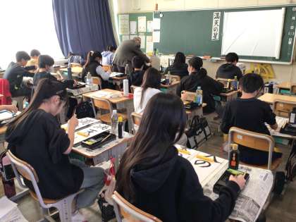 講師の方に来ていただき、第二回の書写指導の授業を実施しました。