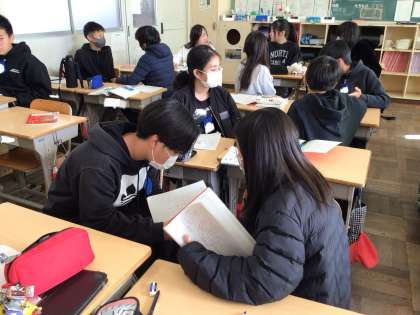 「海のいのち」の単元で、それぞれが考えた問いについてペアで話し合いました。
