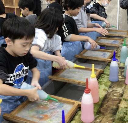 7・8・9組 紙漉き お気に入りの作品に仕上げるぞ!ーお楽しみ遠足(その4)ー
