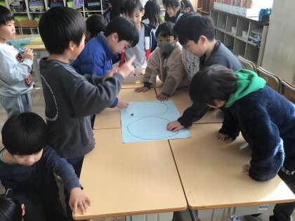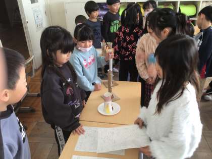 あきのおもちゃを作っておもちゃまつりをしました。手作りのおもちゃで楽しく遊んでいます。