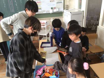 1年生 おもちゃまつり2 公開日 2025/12/19 更新日 2025/12/19 各学年から いつもお世話になっている6年生をおもちゃまつりに招待して、遊んでもらいました。1年生も6年生もいい顔をしています。