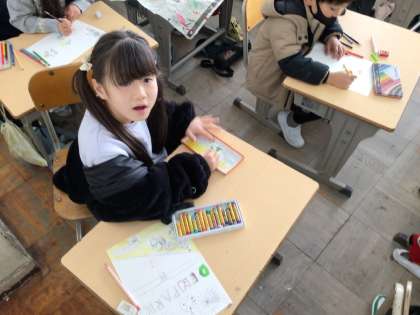 冬休みの思い出を絵に描いてみました。