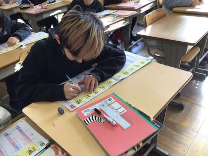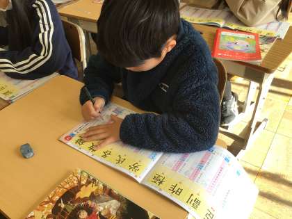 書き初め大会は終わりましたが、日々の漢字練習も集中して丁寧に書いています。