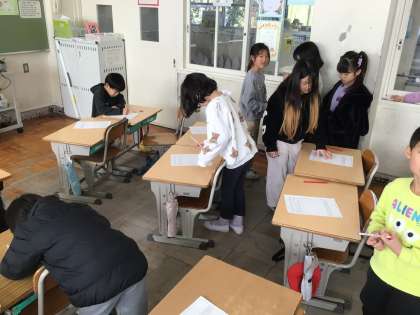 みんなに、自分のよいところやがんばっているところを書いてもらいました。