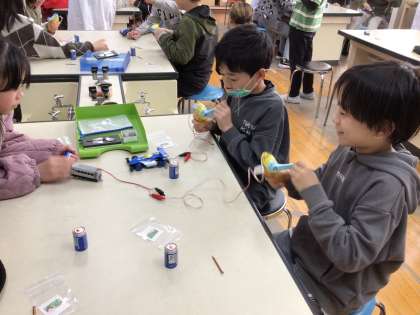 モーターで動く色々なものを実際に触って楽しんでいました。