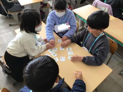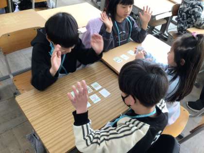 英語での動物の名前と鳴き声を音楽やゲームで楽しく学びました。