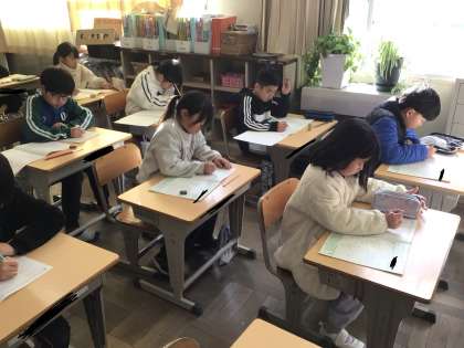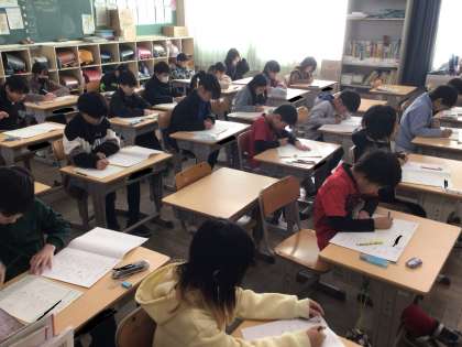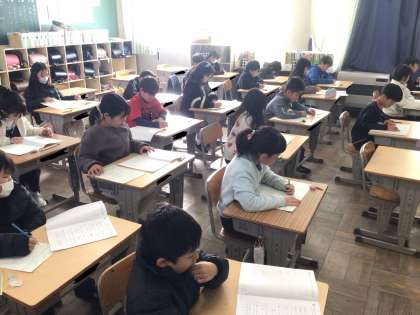 今日は算数と理科の学力テストをしました。時間いっぱいまで、頑張っていました。