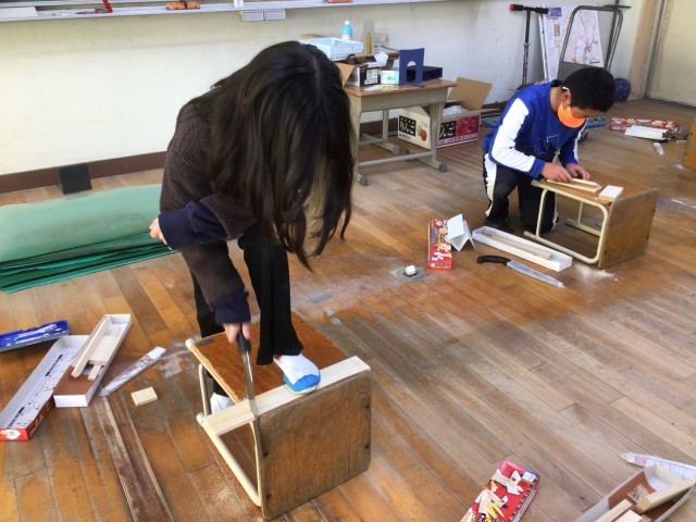 4年 図画工作 のこぎりギコギコ