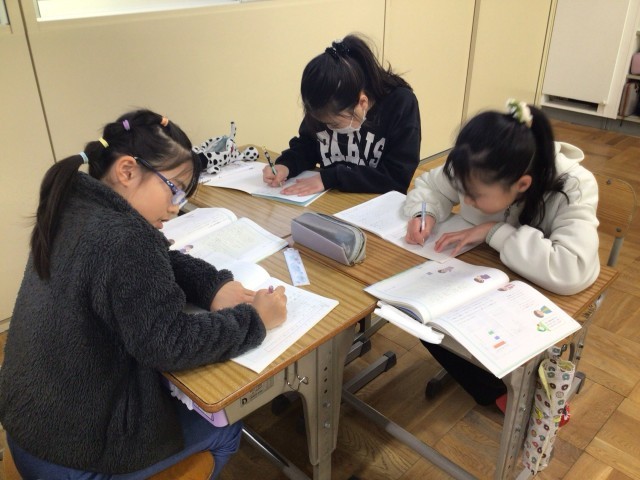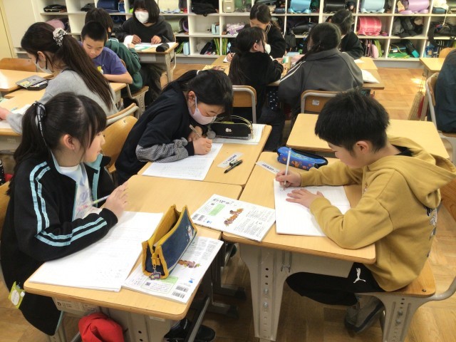 普段の生活について調べたいことを、各グループで考えてアンケートを作っています。