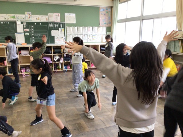 雨だったので教室でできる運動を行いました。