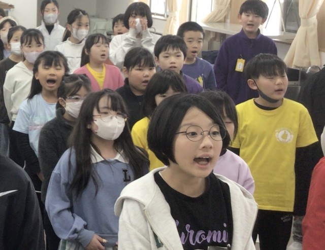 卒業式に向けて歌の練習をしています。気持ちがこもっています。