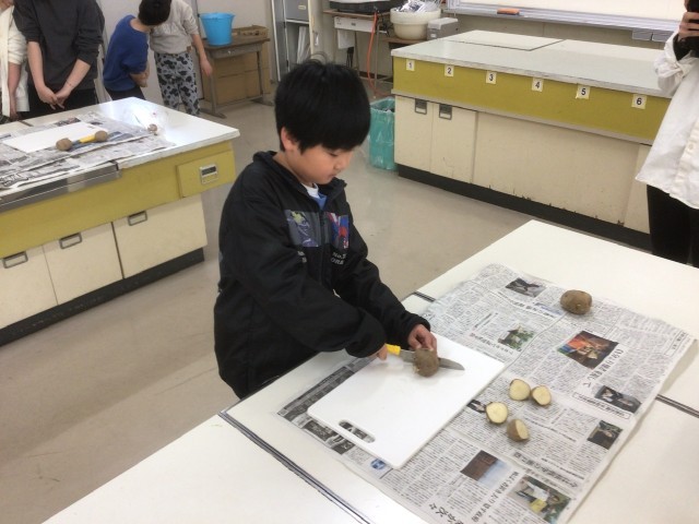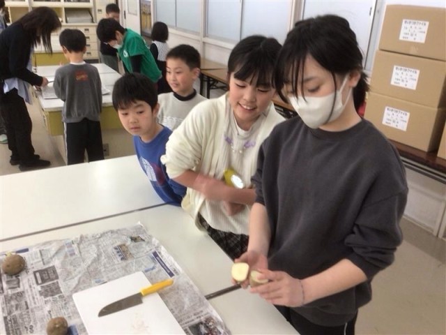 7・8・9組 じゃがいもの種芋を準備したよー生活単元の学習