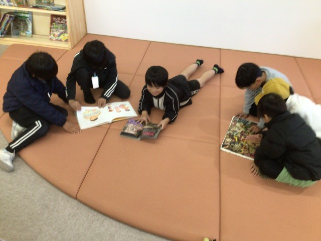 貸し出し期間が終わってしまいましたが、教室から近くにある今、本に親しんでもらっています。