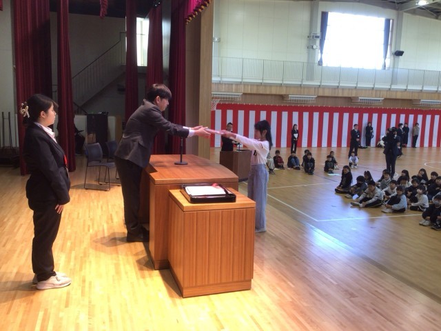 校長先生から通知表を受け取り、4年生へ進級を認められました。この1年間で、学習面、生活面ともに大きく成長してくれました。それも、ご家庭や地域のご協力があったおかげです。本当にありがとうございました。