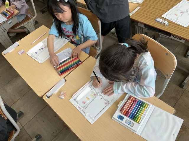 自分の名前や、好きな果物や動物の絵が、上手に書けました。
