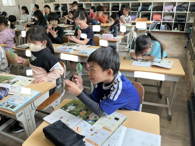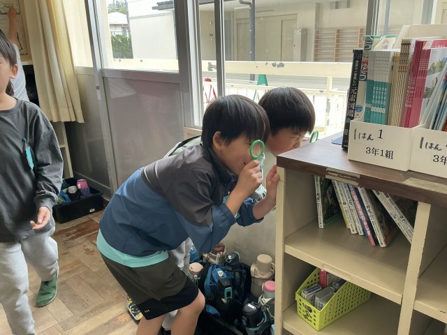 虫メガネの使い方を勉強し、教室の中で観察する練習をしました。