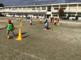 1年生全クラスで鬼ごっことドッジボールをしました。 先生鬼から楽しそうに逃げたり...