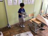 2年生は図工で、「くしゃくしゃ ぎゅっ」という造形遊びを楽しみました。 新聞紙を...