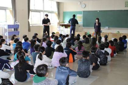 3年生は、学年集会でした。新しい担任の紹介や特技の披露で、盛り上がっていました。